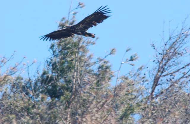 オオワシが飛び立ってしばらくして、 まだ、尾羽が白くなりきっていない、オジロワシの若鳥がやって来ました。