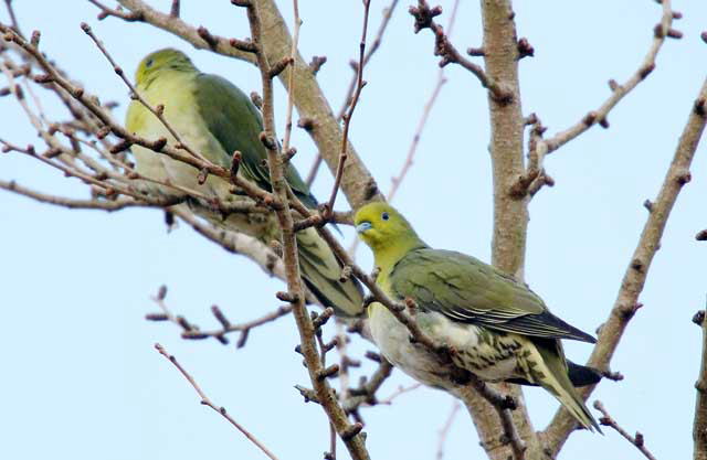 どちらも雨覆が緑色に見えますので2羽とも♀です。
