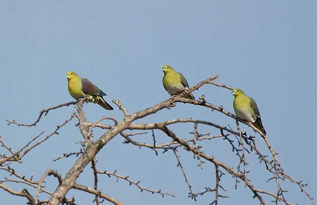 大仏殿の裏のイチョウの高木の頂にはアオバトが7羽ほど群れていました。