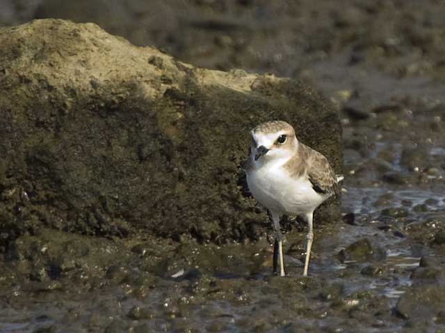河口近くの岸辺でであったシロチドリです。
