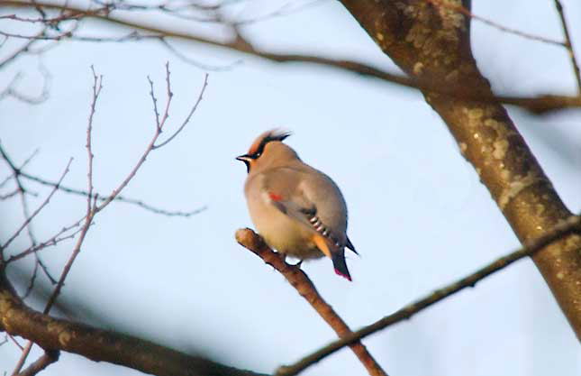 少し早めに到着し、朝7時半に撮影した、朝日のなかのヒレンジャクです。