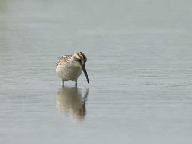 水が多いので足の長さは判りませんが二本にわかれた眉斑や先が下向きに曲がった嘴などの特徴は良く見えます。