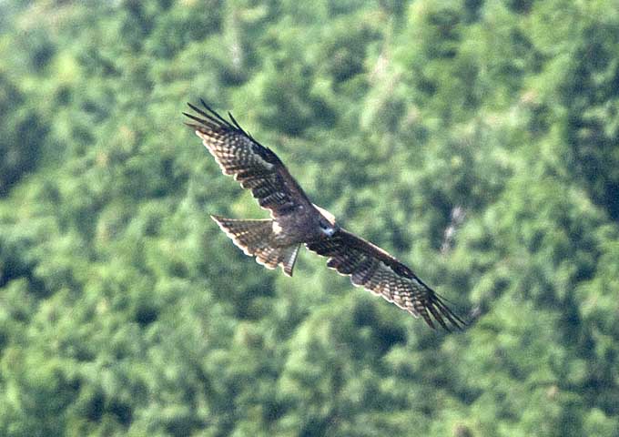 トビも中には渡る個体もいるようですがこの鳥は居着つきのトビと思われ、たまたま、ただ一羽ですぐ近くに現れて輪を描いていました。