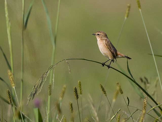 丈の低い草原では少しでも高い草に止まって虫をねらっているようです。
