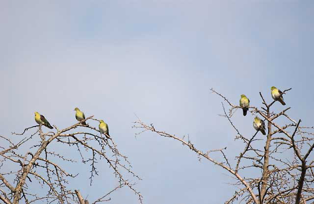 大仏殿の裏のイチョウの高木の頂にはアオバトが7羽ほど群れていました。