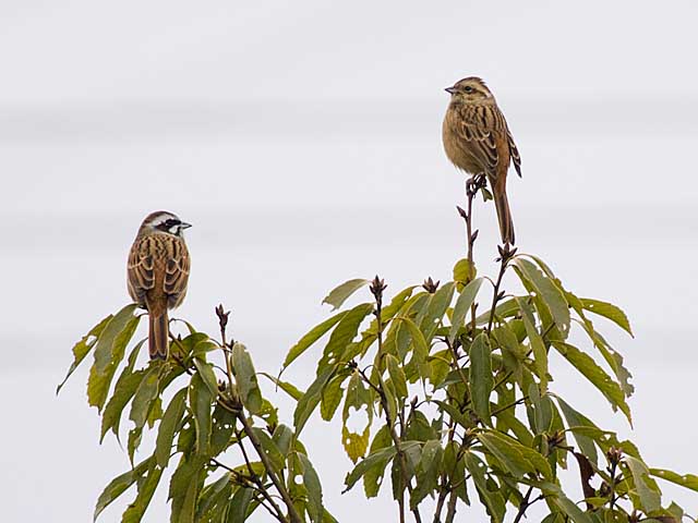 林を出てみると、普通のホオジロもカップルで止まっていました。