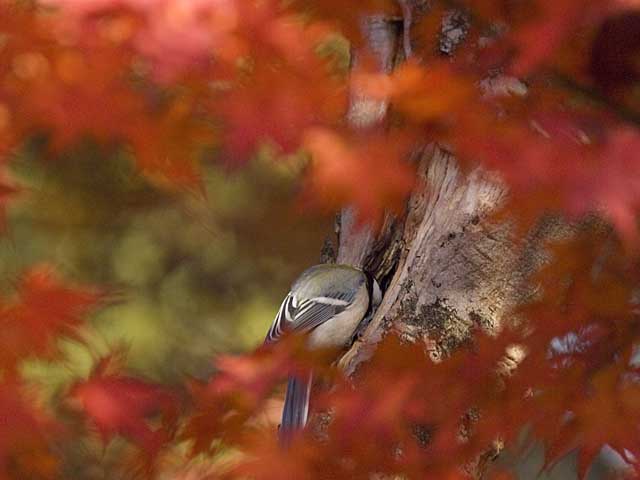 モミジの中を虫を探して賑やかに飛び回っていました。
