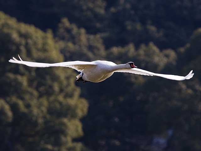 コブハクチョウは元来、大陸で繁殖し、越冬する鳥ですが、各地のお堀や池で飼われている鳥が羽切りの時期が遅れる等の理由で逃げ出して野生化しているものがいて、この鳥も籠抜けの鳥と思われ、やって来た時から人に良く馴れています。