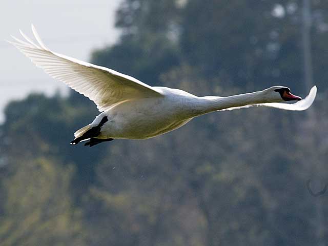 琵琶湖や宍道湖でコハクチョウの飛翔を間近で見たことはあるのですがやはり、体重差(コハクチョウは6〜8KG程度)のためかシュン・シュンという風切り音の迫力が全く違うという印象を受けました。