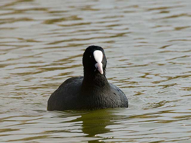 良く見ると白い額板と嘴に赤い目のおもしろい鳥ですね。