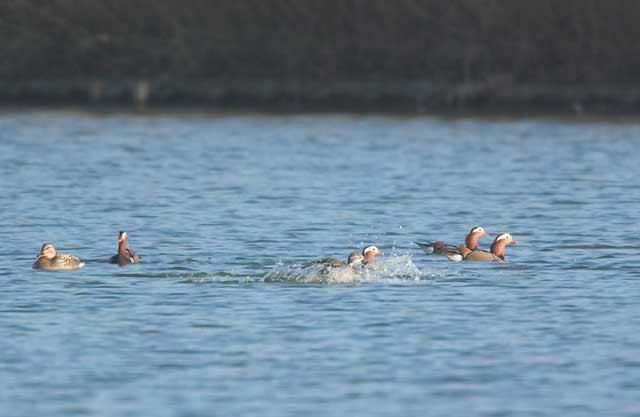 水上池オシドリ着水
