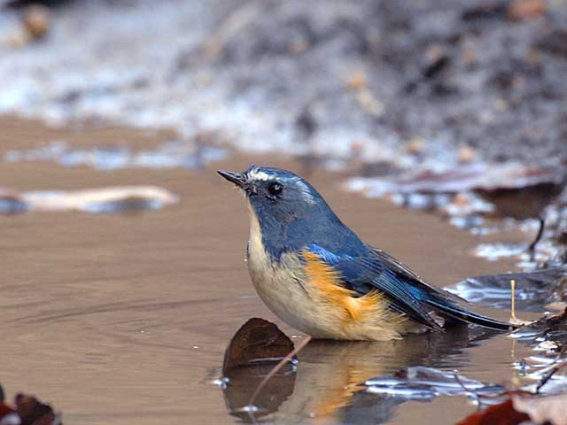 ひどい濁り水に見えますが周囲の土や枯葉の色を写しているだけで水そのものは濁ってはいないようです。