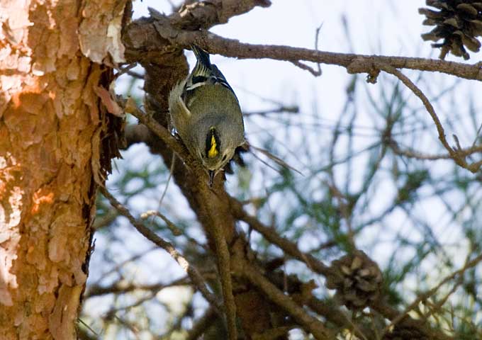 赤松に来たエナガ、シジュウカラ、メジロの群れに一羽混じっていました。