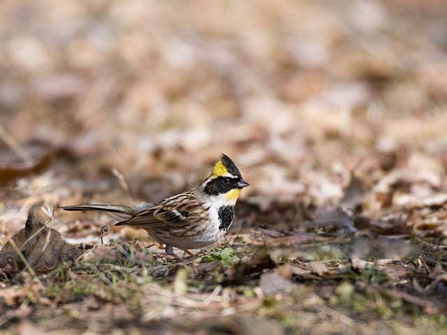 林の中の雪もほとんど無くなり、ミヤマホオジロたちもいつものように落ち葉をかき分けて餌を探していました。