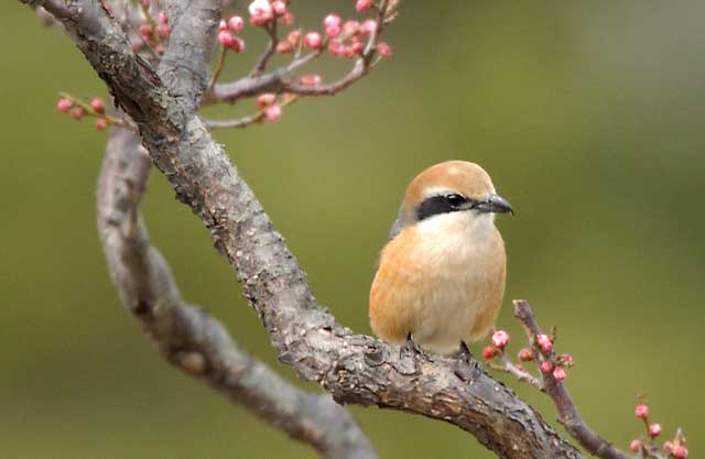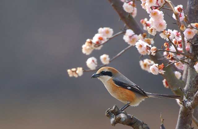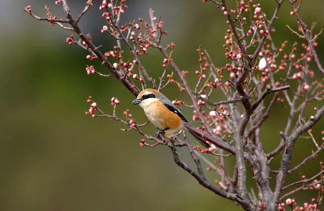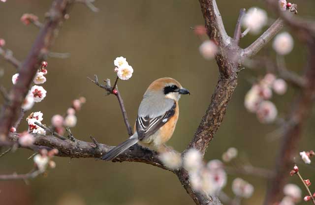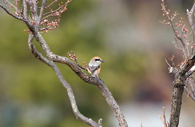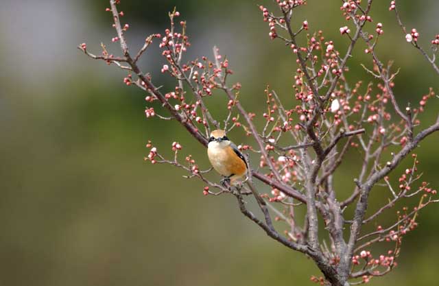 今日は良く晴れて家族連れの人々でにぎわっていましたが、モズたちは自分の縄張りの梅をまわって、餌をとったり、さえずったりしていました。