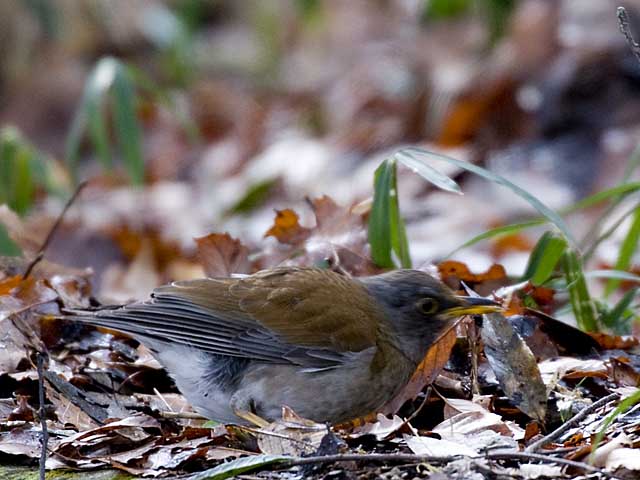 落ち葉を足で蹴散らしたり、この写真のように数枚の落ち葉をくわえて放り投げたりしてがさごそと落ち葉をはねのけて行きます。