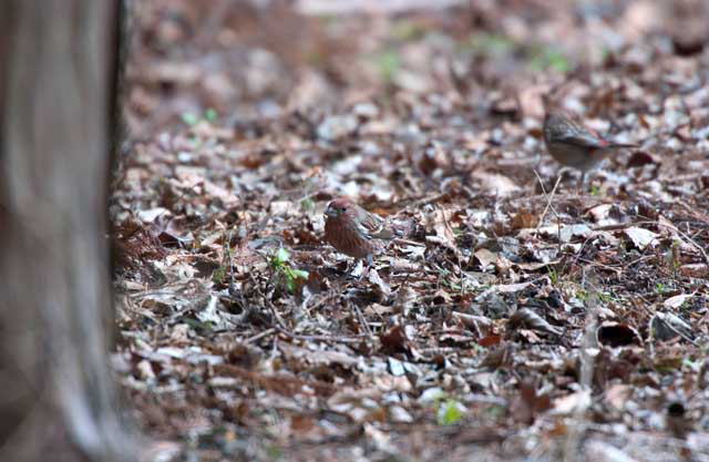 ここには2羽しか写っていませんが、真っ赤な雄の成鳥と雌または雄の若鳥が2羽の構成でした。