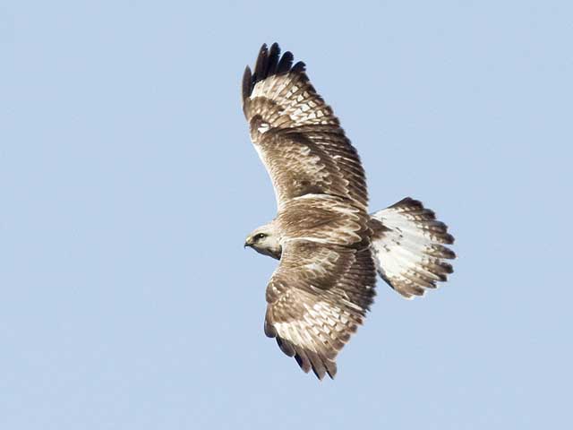特徴の、初列風切り羽の基部が白く、白斑状にみえ、尾羽の先端の黒帯もはっきりしています。
