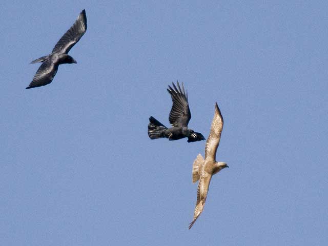 カラスのモビングを受けて迷惑そうでした。