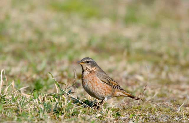 ハチジョウツグミはツグミの亜種で下面が赤燈色で背中の色もツグミとはかなり違っています。