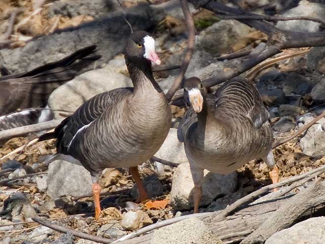 この写真でみるとマガンのほうがずっと小さくみえますが・・・