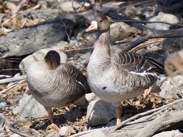 一つ前の画面のカリガネが寝てしまい、右のマガンだけが起きているのでマガンのほうがずっと大きく見えます。