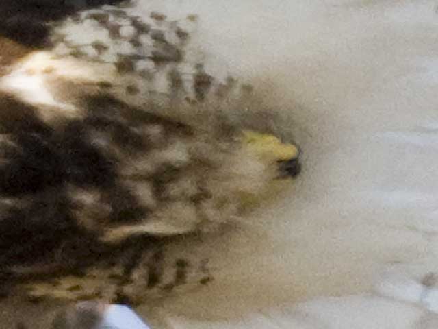 頭部の拡大 さらに2倍に拡大した頭部の写真です。 虹彩は暗色ではなくて黄色です。 |