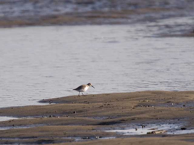 群から一羽離れていたハマシギです。