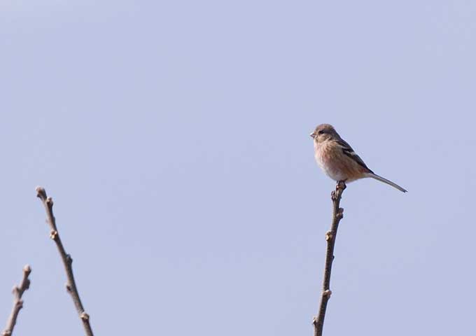 遠くの立木の枝先に止まったベニマシコです。