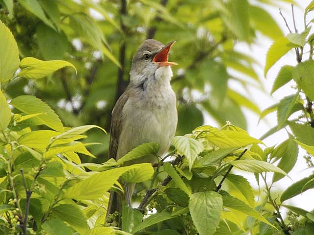 葦原近くの木立でギョギョシ・ギョギョシと賑やかにさえずっていたオオヨシキリです。