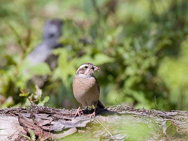 林の下の倒木の上で餌取りをしていたホオジロの雌です。