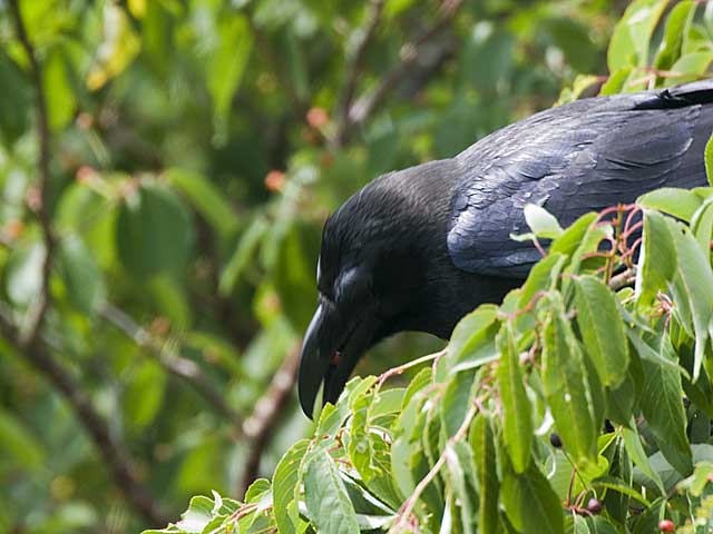 山桜の実を食うハシブトガラス