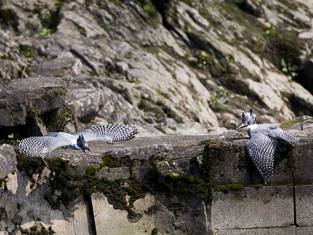 水に飛び込んでもすぐに陸に上がって羽を乾かしていました。