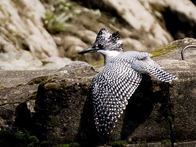 水に飛び込んでもすぐに陸に上がって羽を乾かしていました。