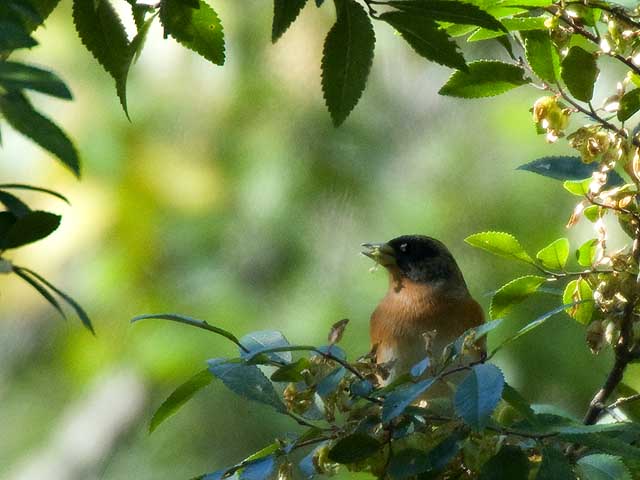 こちらは群でやってきて、アキニレの高木で実を食べていました。