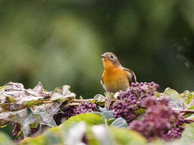 胸のオレンジ色はかなりきれいになりつつあるようです。