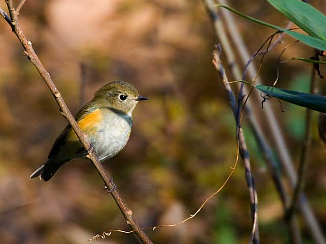 ルリビタキの若い雄です。(胸のバンドは枝の影です。)