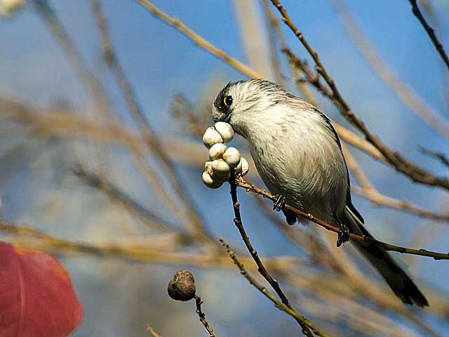 ナンキンハゼの実についている虫を食べているのでしょうか、それとも果皮を食べているのかもしれず、どちらかよく判りませんでした。