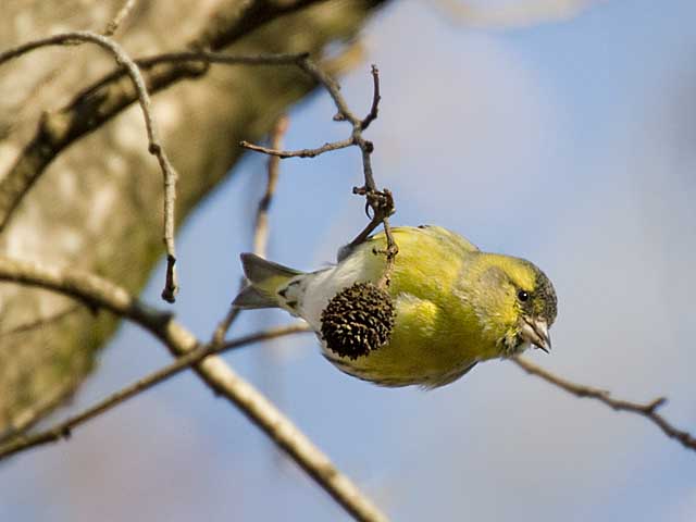 カワラヒワと同じような矢羽根の形の尾羽で、やはりアトリ科でメジロよりやや大きい程度の小さな鳥です。