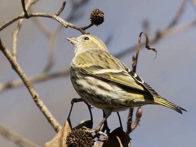 雌は黄色味が薄く縦斑が目立ち、地味に見えます。