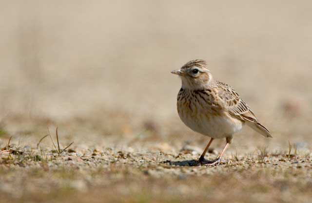 前回の写真は冠羽が立っていないのでヒバリらしくないと家人からクレームがついていたので、冠羽を立ている時を狙って撮ることにしました。