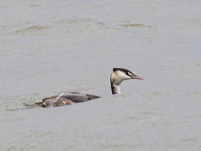 漁港の中も強風で波が高く、カンムリカイツブリも半分沈んでいました。反省!