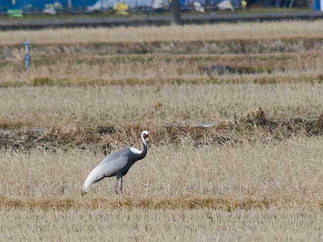 マナズルの越冬地の鹿児島県の出水では大きな群が見られますが、ここでは、たった一羽のようです。