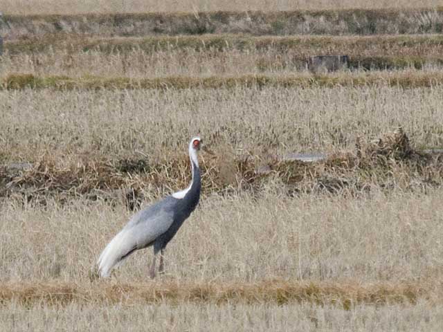 マナズルの越冬地の鹿児島県の出水では大きな群が見られますが、ここでは、たった一羽のようです。
