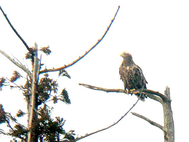 デジスコも挑戦してみましたがやはり曇り空を背景の逆光画像ということでかなりしんどいようですが、尾羽の先が白いことは判りました。