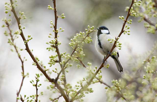 スモモに来たシジュウカラ