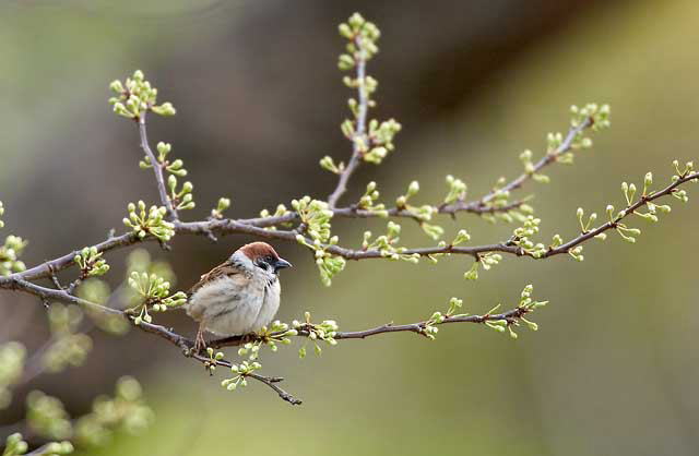 スモモに来たスズメ