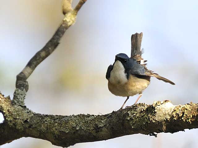 翌日の撮影で木の枝にあがったコルリです。