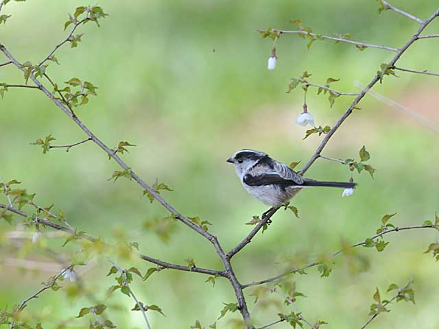 咲き始めた花に似つかわしいちいさなエナガです。