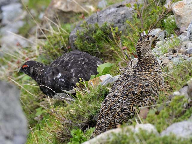 翌日出会ったライチョウの雌雄です。